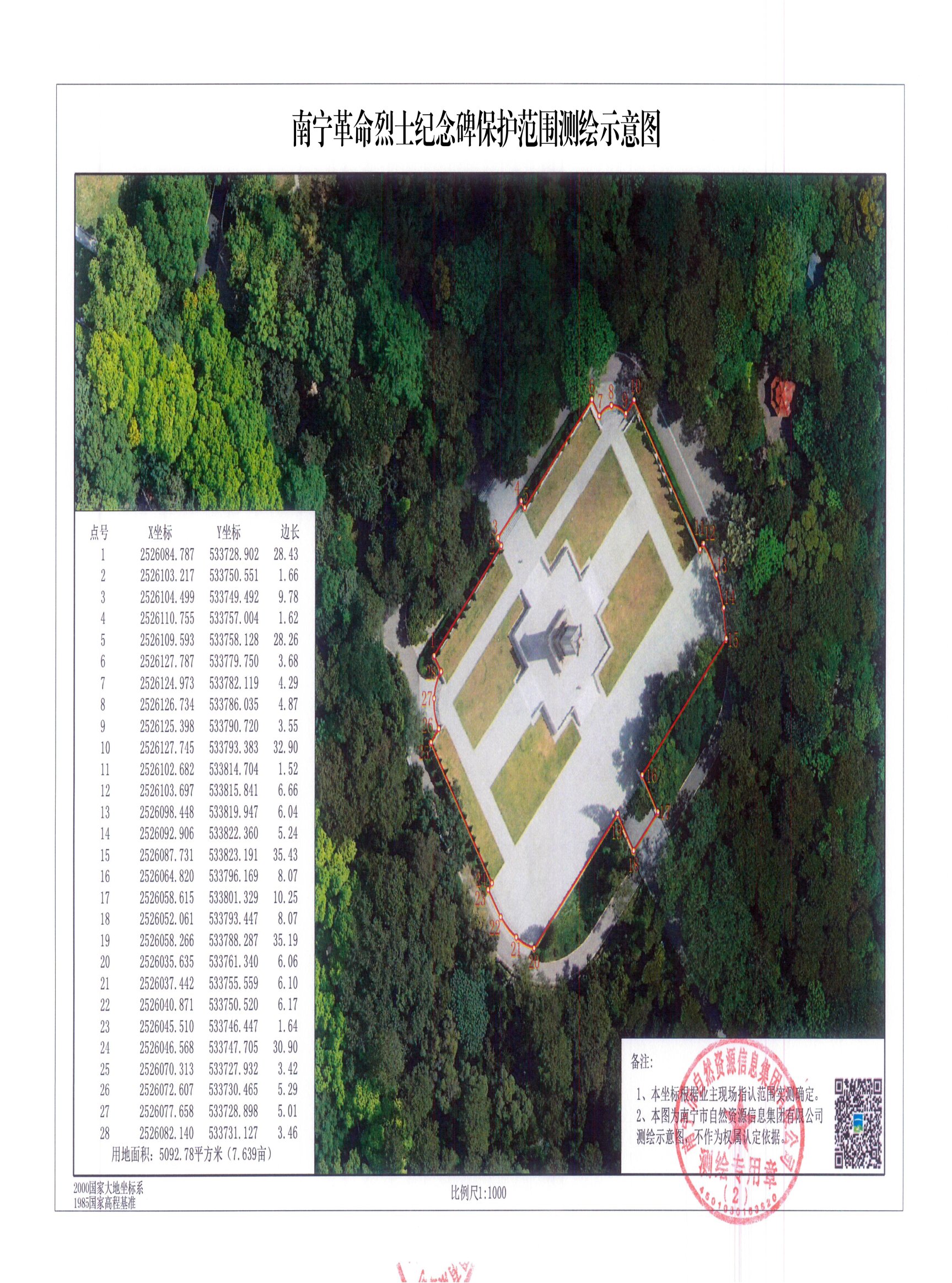 图3:南宁革命烈士纪念碑保护范围测绘示意图
