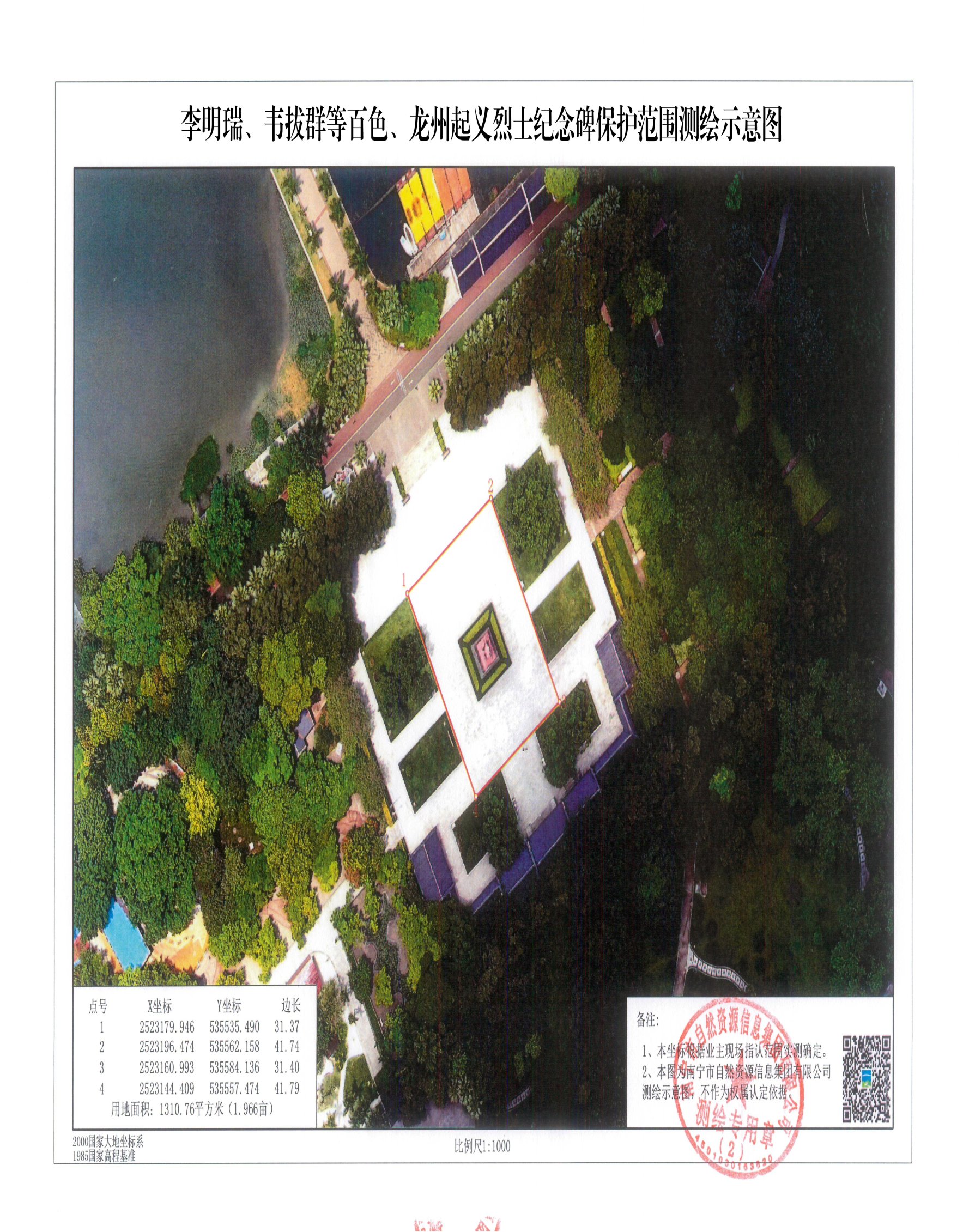 图4:李明瑞、韦拔群等百色、龙州起义烈士纪念碑保护范围测绘示意图