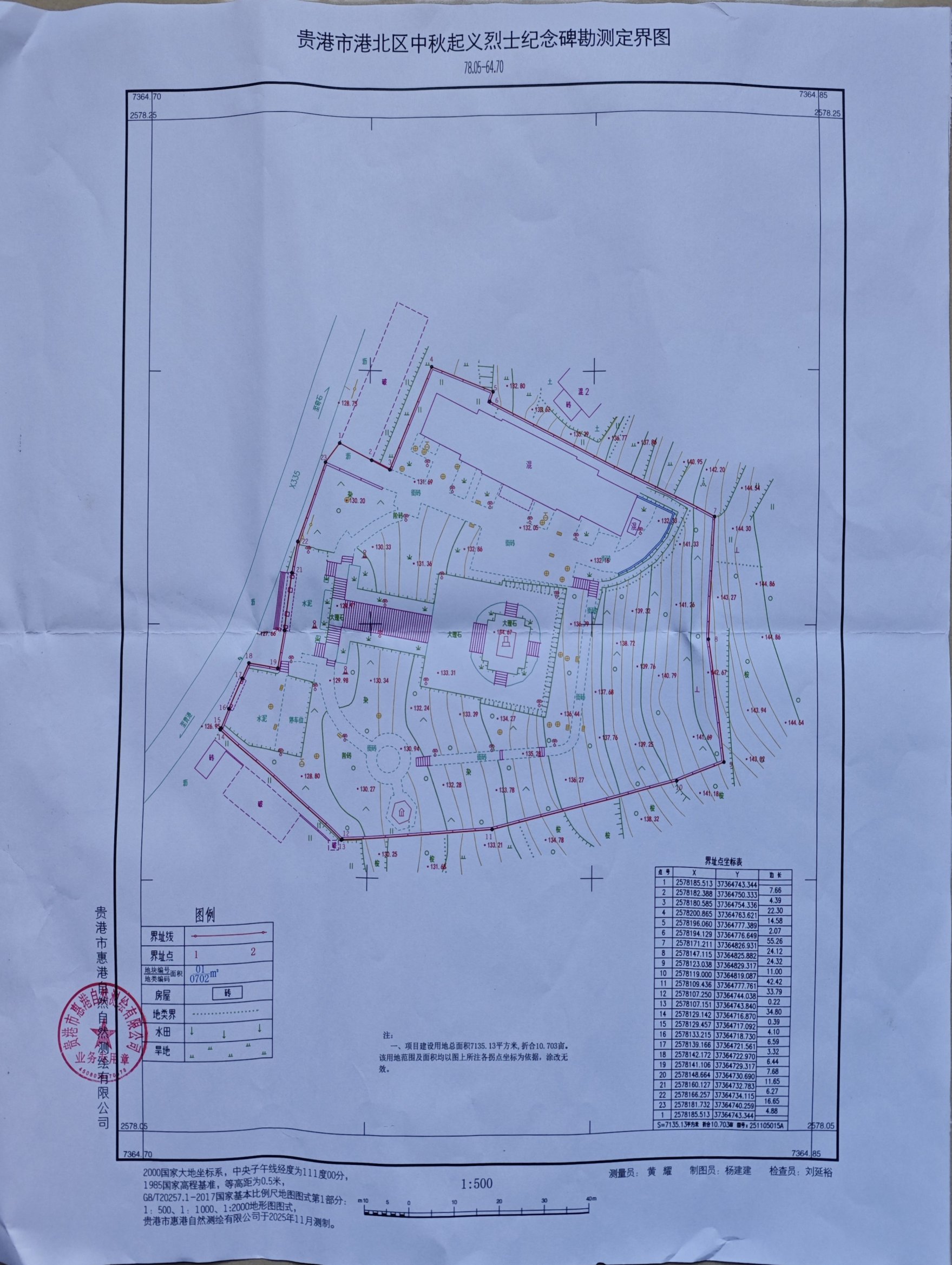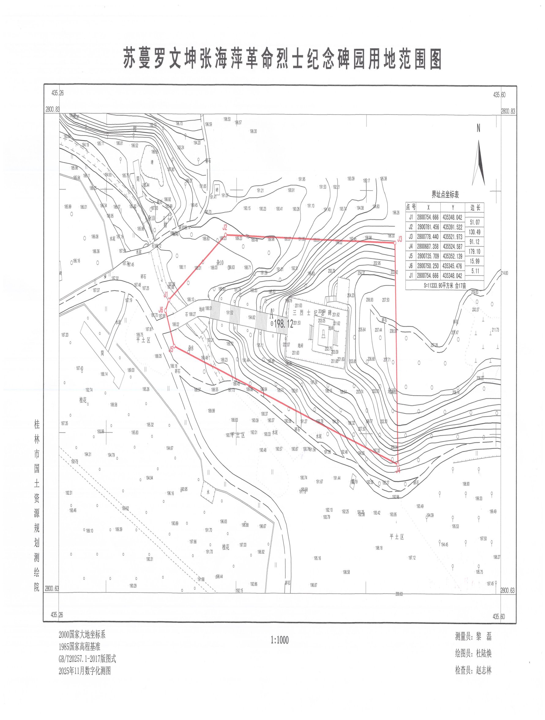 图11:中秋起义烈士纪念碑勘测定界图