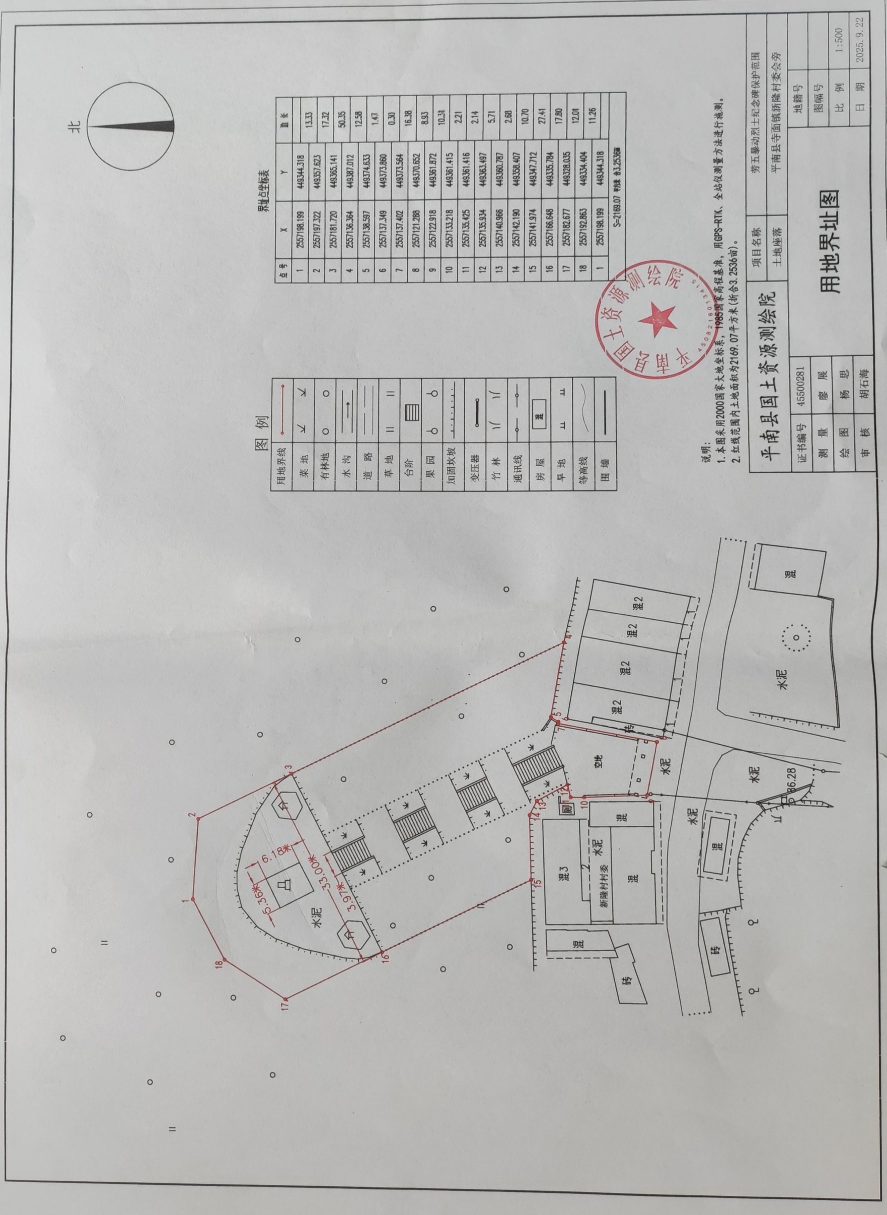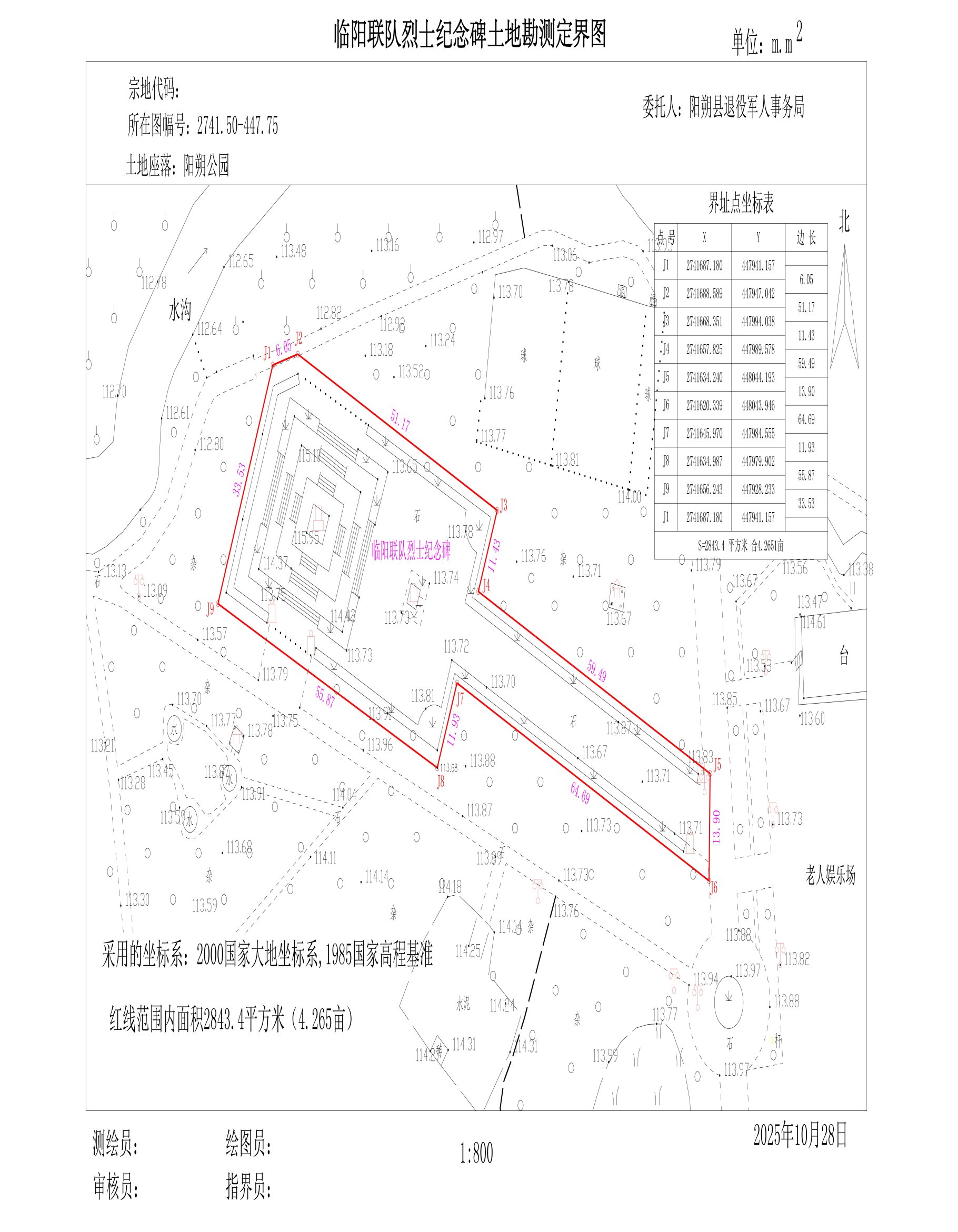 图6:临阳联队烈士纪念碑土地勘测定界图