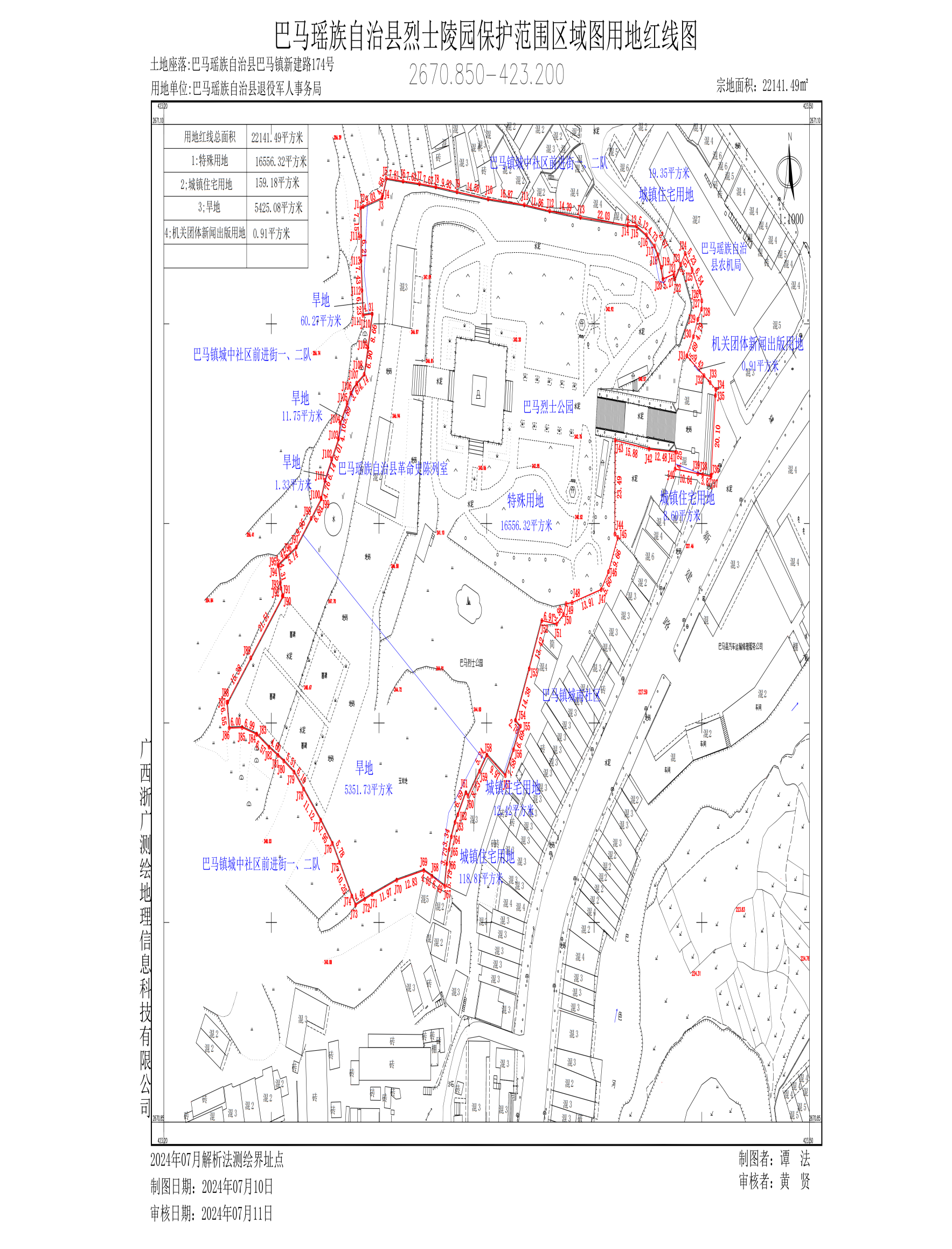 图17:巴马瑶族自治县烈士陵园保护范围区域图用地红线图