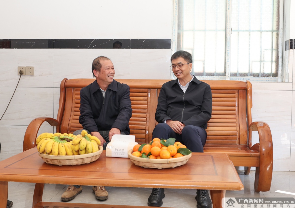 陈刚来到百色市右江区龙景街道福禄村,走进脱贫户家中,与脱贫群众促膝而谈。记者 何学俏 摄