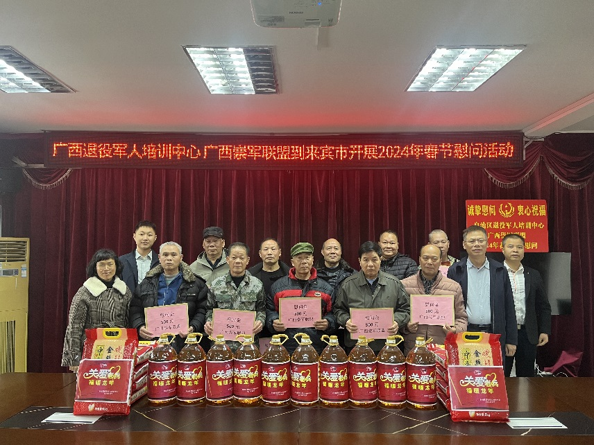 1月24日至2月4日,自治区退役军人培训中心会同广西崇军联盟开展“关爱退役军人 福暖龙年” 迎春慰问活动。