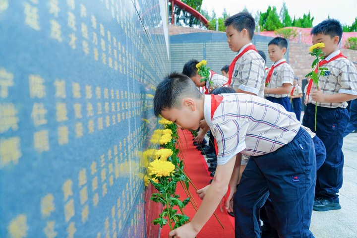 全体人员依次瞻仰烈士纪念碑和烈士英名墙,并向烈士敬献鲜花和寄语卡。活动现场设置学生绘画书法作品展,青少年以笔墨为载体,用艺术形式表达对革命先烈的崇敬与缅怀之情。