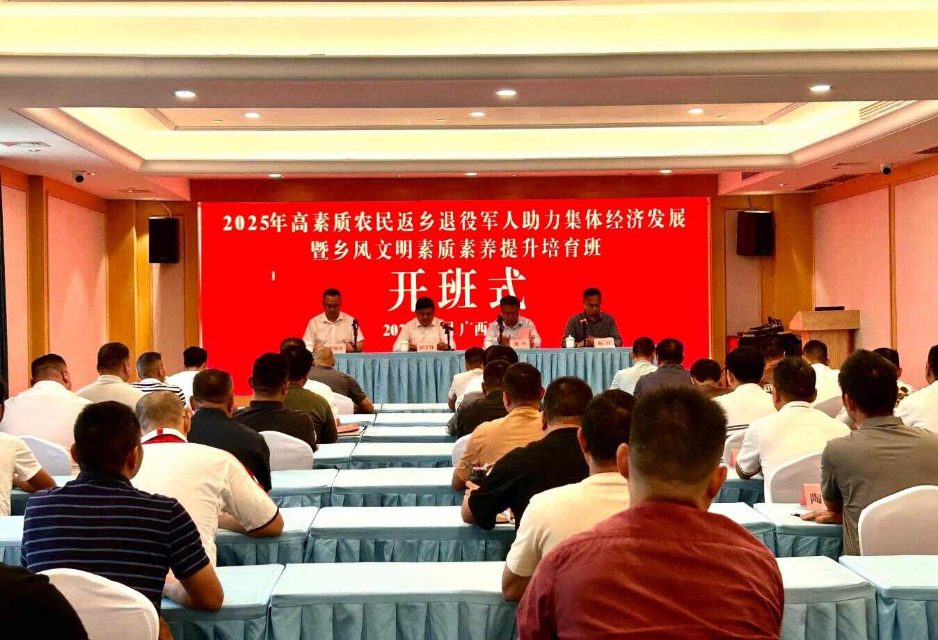 10月20日,由自治区农业农村厅和退役军人事务厅联合主办的2025年高素质农民返乡退役军人助力集体经济发展暨乡风文明素质素养提升培育班在南宁开班。自治区退役军人事务厅党组成员、副厅长徐文伟出席开班式并讲话。首期50名来自广西各县(市、区)的村(社区)“兵支书”“兵委员”参加培训。