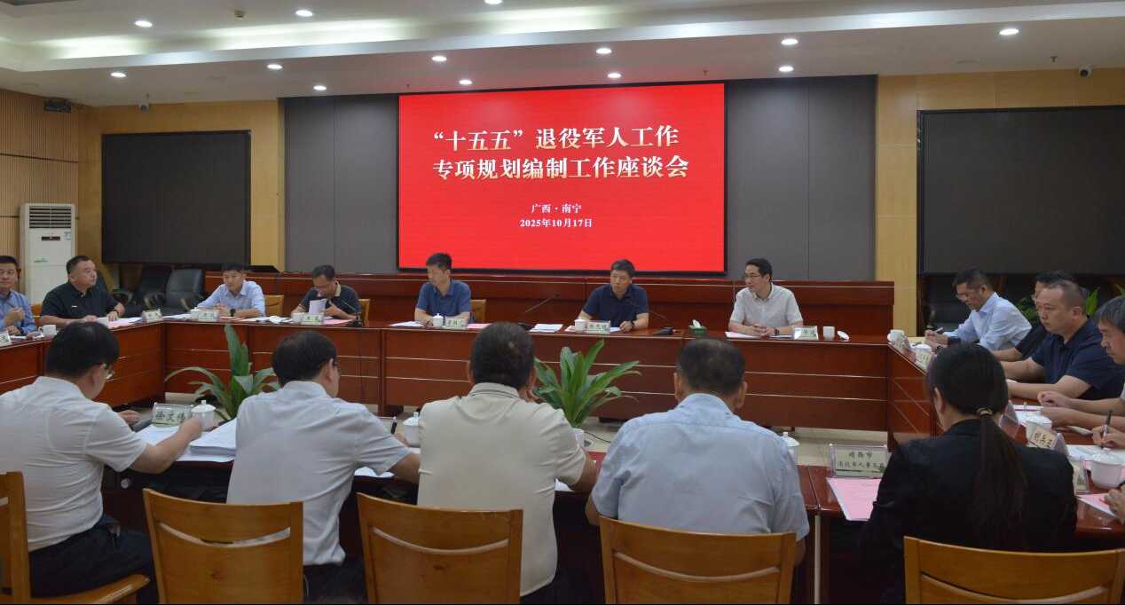 近日,“十五五”退役军人工作专项规划编制工作座谈会在南宁举行。会议深入贯彻习近平总书记关于退役军人工作的重要论述和关于“十五五”规划编制工作的重要指示精神,全面总结“十四五”规划实施成效,科学谋划新时代退役军人工作发展蓝图。