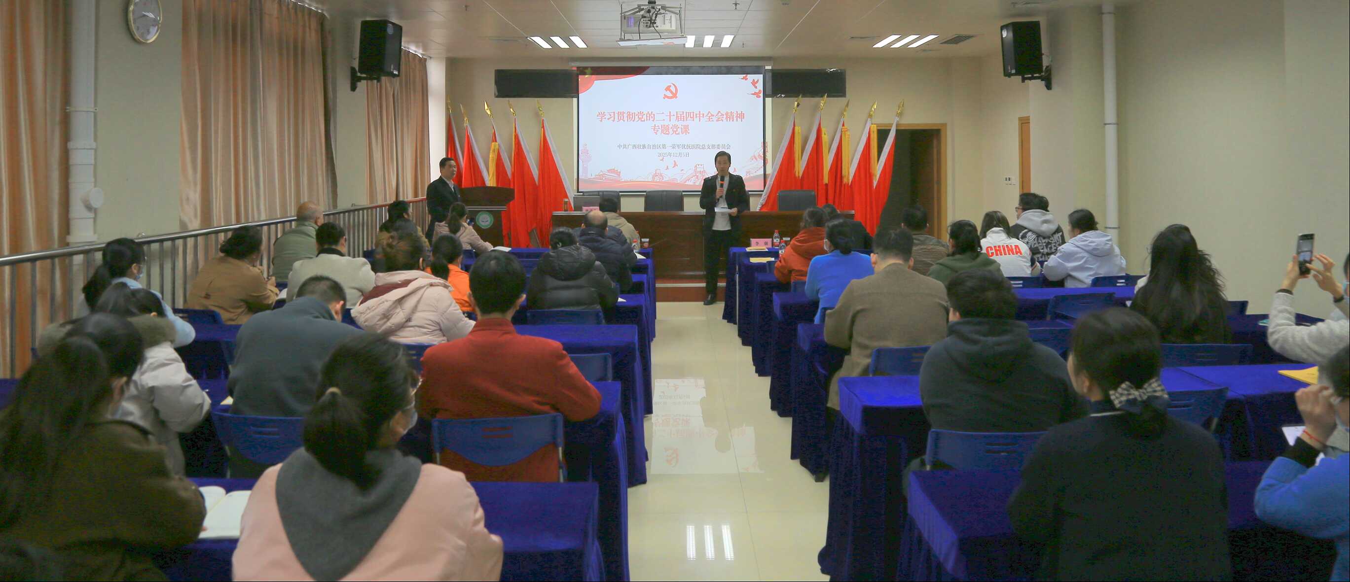 近日,自治区第一荣军优抚医院特邀广西宣讲团指导老师、南宁市委讲师团特聘教授陈谨礼,以《学习贯彻党的二十届四中全会精神》为题讲授专题党课。陈谨礼结合广西、柳州实际,系统阐释“十四五”时期我国发展取得的重大成就,解读“十五五”时期经济社会发展的指导方针、主要目标和重点任务,让与会人员对如何立足岗位、服务广西发展大局有了更清晰的把握。