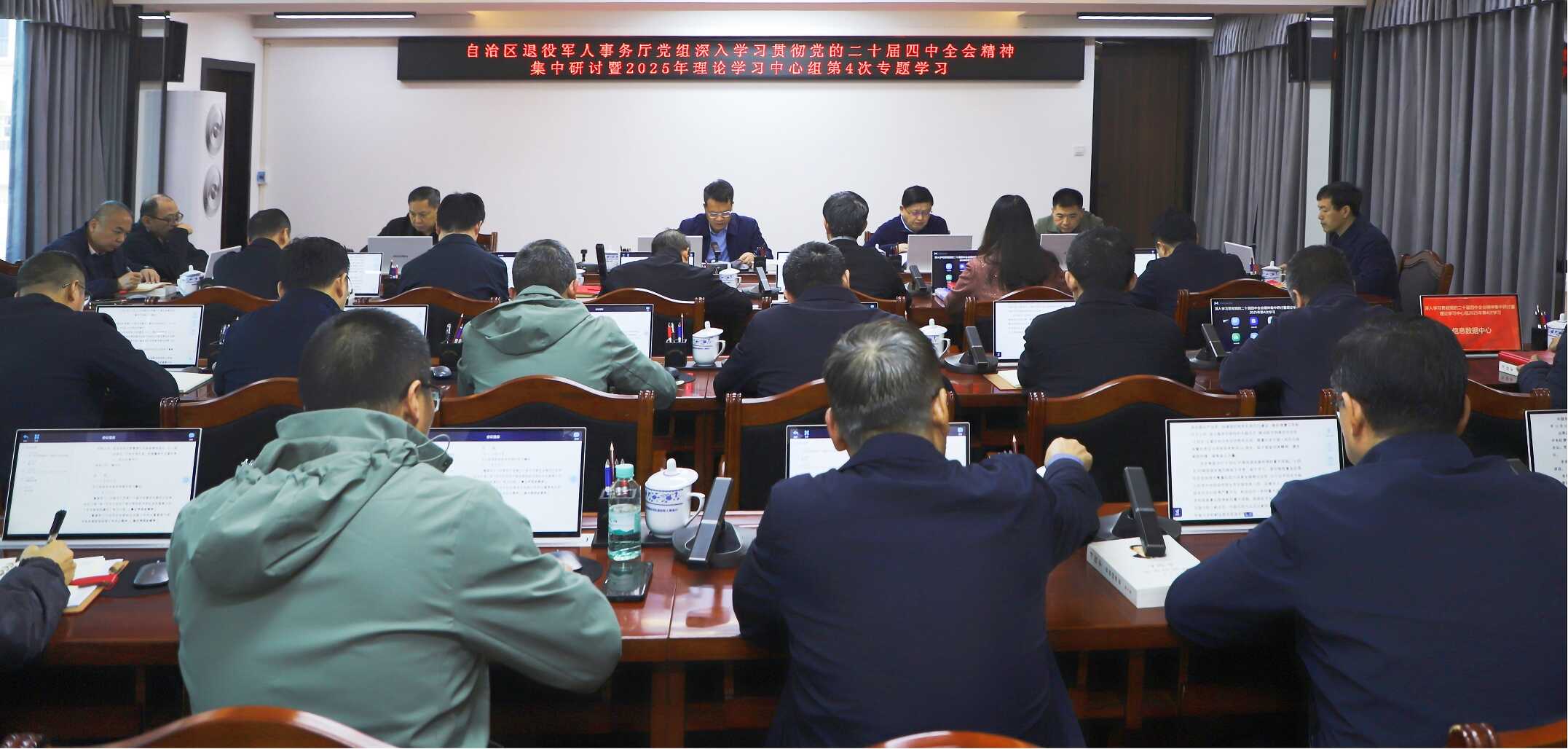 12月15日,自治区退役军人事务厅党组召开深入学习贯彻党的二十届四中全会精神集中研讨暨理论学习中心组2025年第4次专题学习会。厅党组书记、厅长黄卫平主持会议并讲话,厅党组成员、副厅长徐文伟、彭石山、王幼林参加学习,驻自治区应急管理厅纪检监察组负责同志,厅二级巡视员,机关各处室、各直属单位主要负责同志,直属机关纪委书记列席会议。