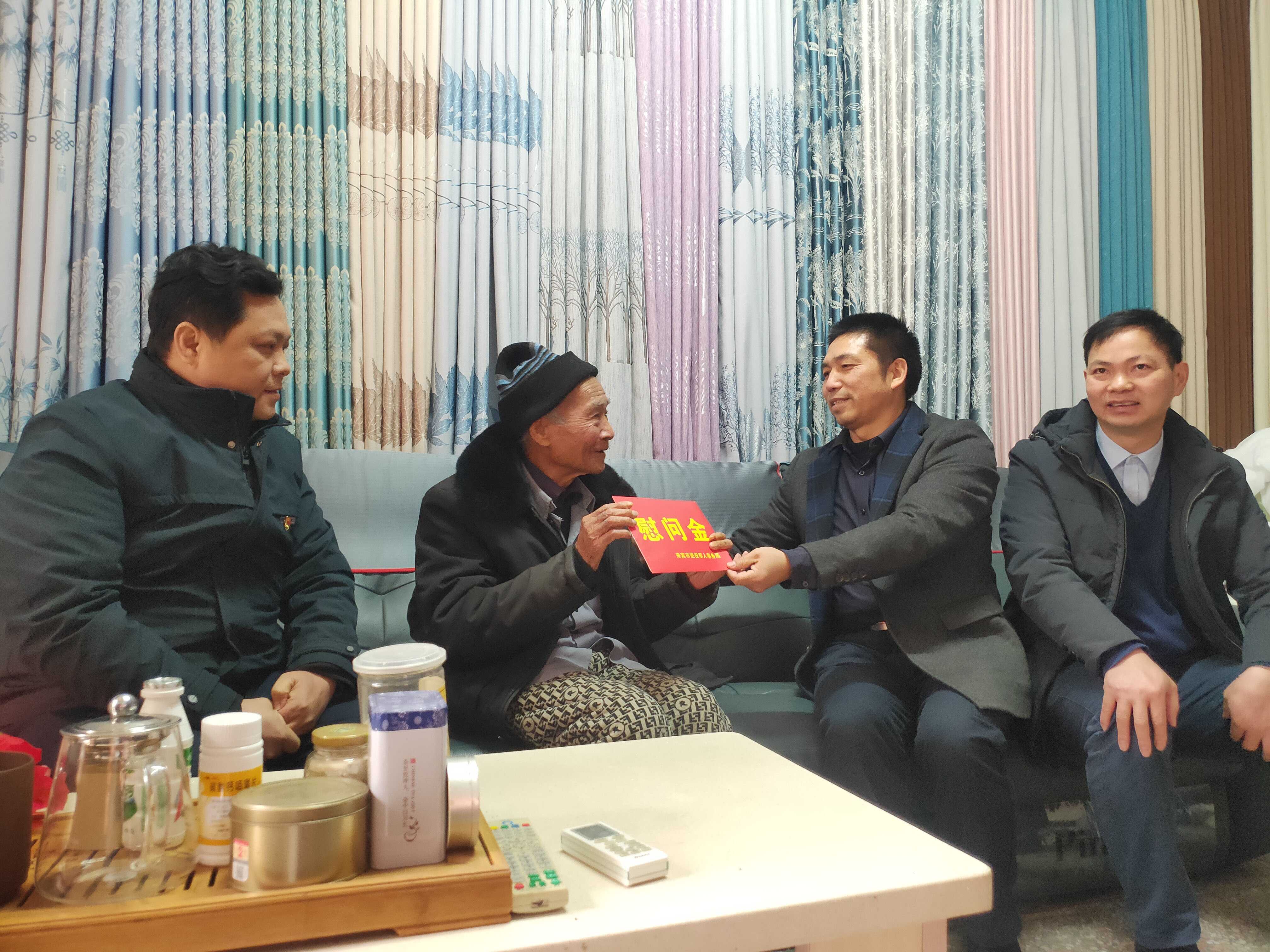 近日,来宾市退役军人事务局组成慰问组分别走访慰问了抗美援朝老兵高本年、对越自卫反击战烈属莫奶奶和退役军人黄智勇。活动中,慰问组亲切地与他们聊家常,详细询问他们在生活、身体等方面的情况,向他们送去党和政府的关心问候以及崇高敬意,感谢他们为党和国家作出的突出贡献,并给他们送去慰问金和节日的祝福。