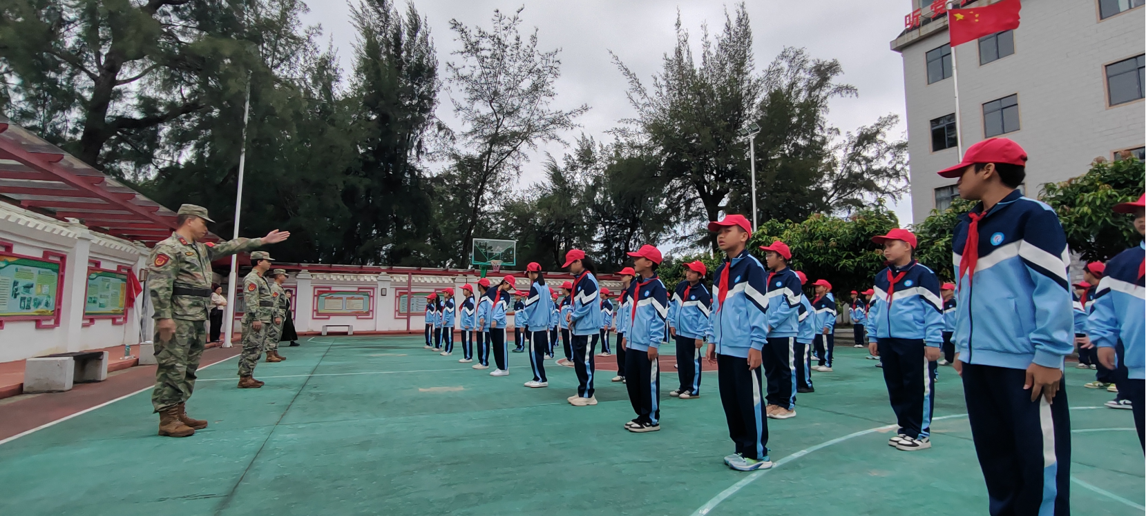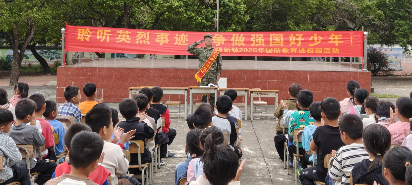 10月27日,武宣县禄新镇退役军人服务站到小学开展“国防教育进校园”宣讲活动。(黄新万)
