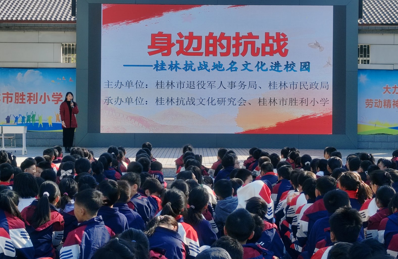 近日,桂林市退役军人事务局联合相关单位,开展“身边的抗战——桂林抗战地名文化进校园”活动。(唐云宽)