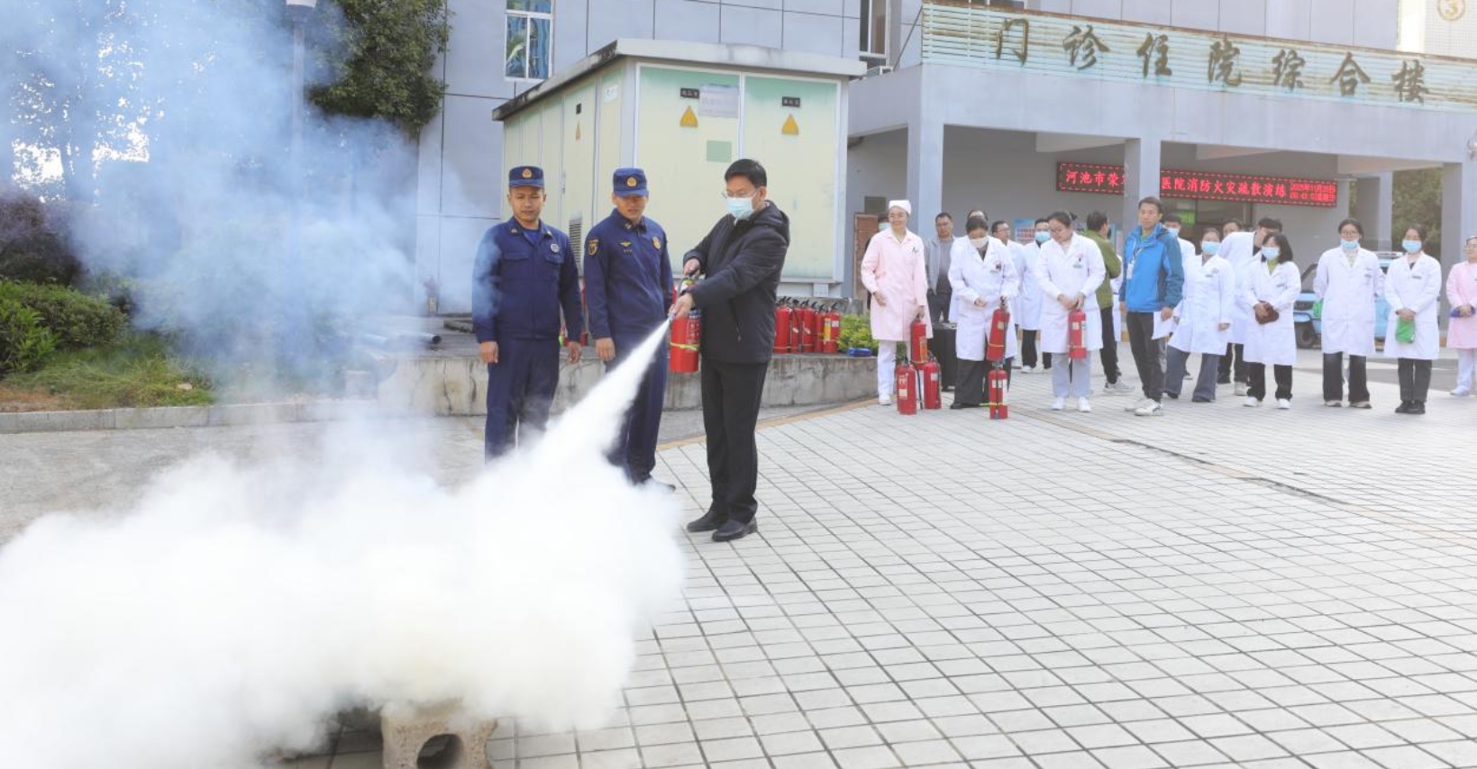 近日,河池市荣军优抚医院开展消防应急演练。(赖欲霖、杨景亮)