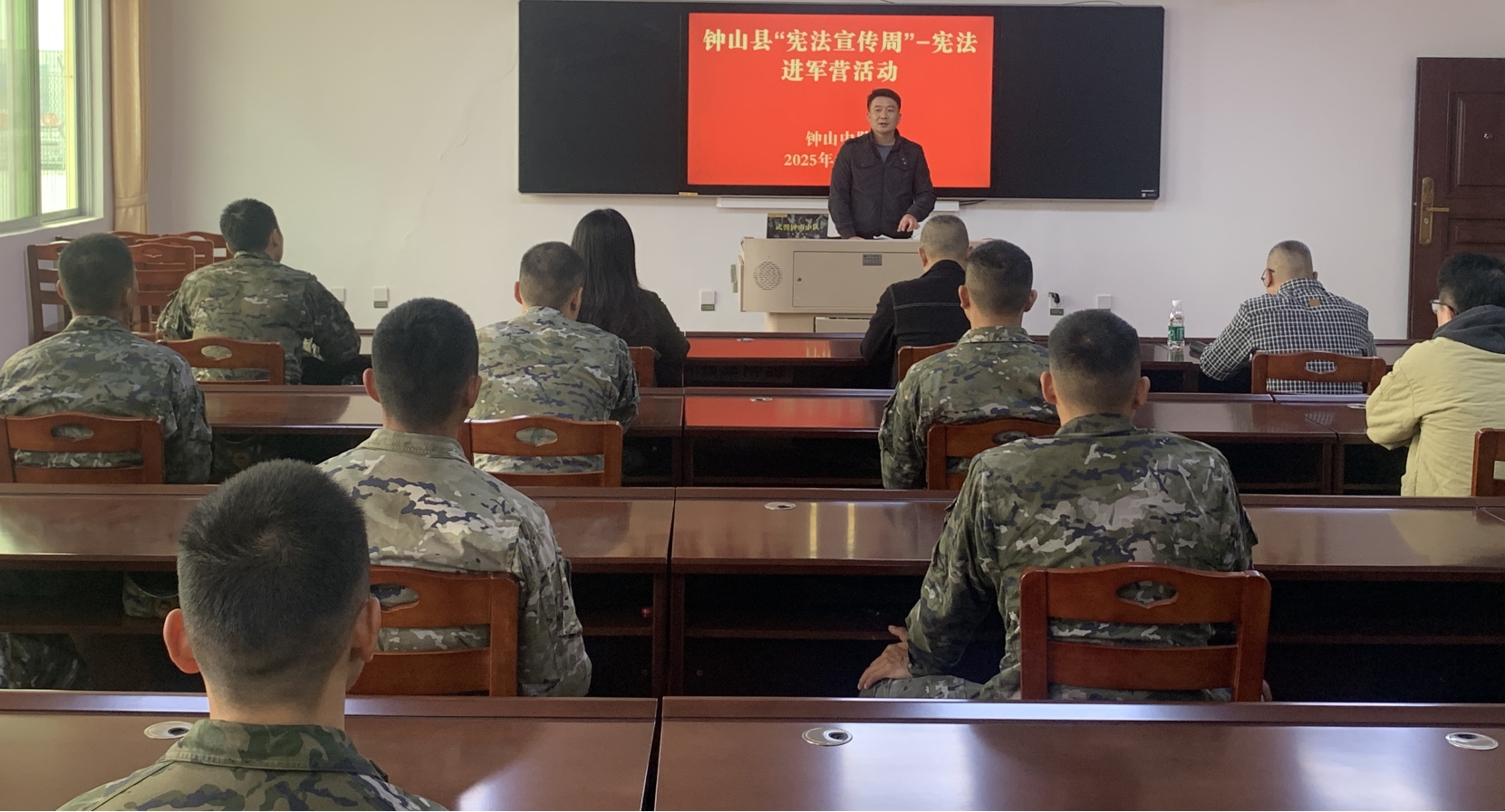 12月4日,钟山县退役军人事务局联合相关单位,开展“宪法进军营”普法宣传活动。(叶雁)