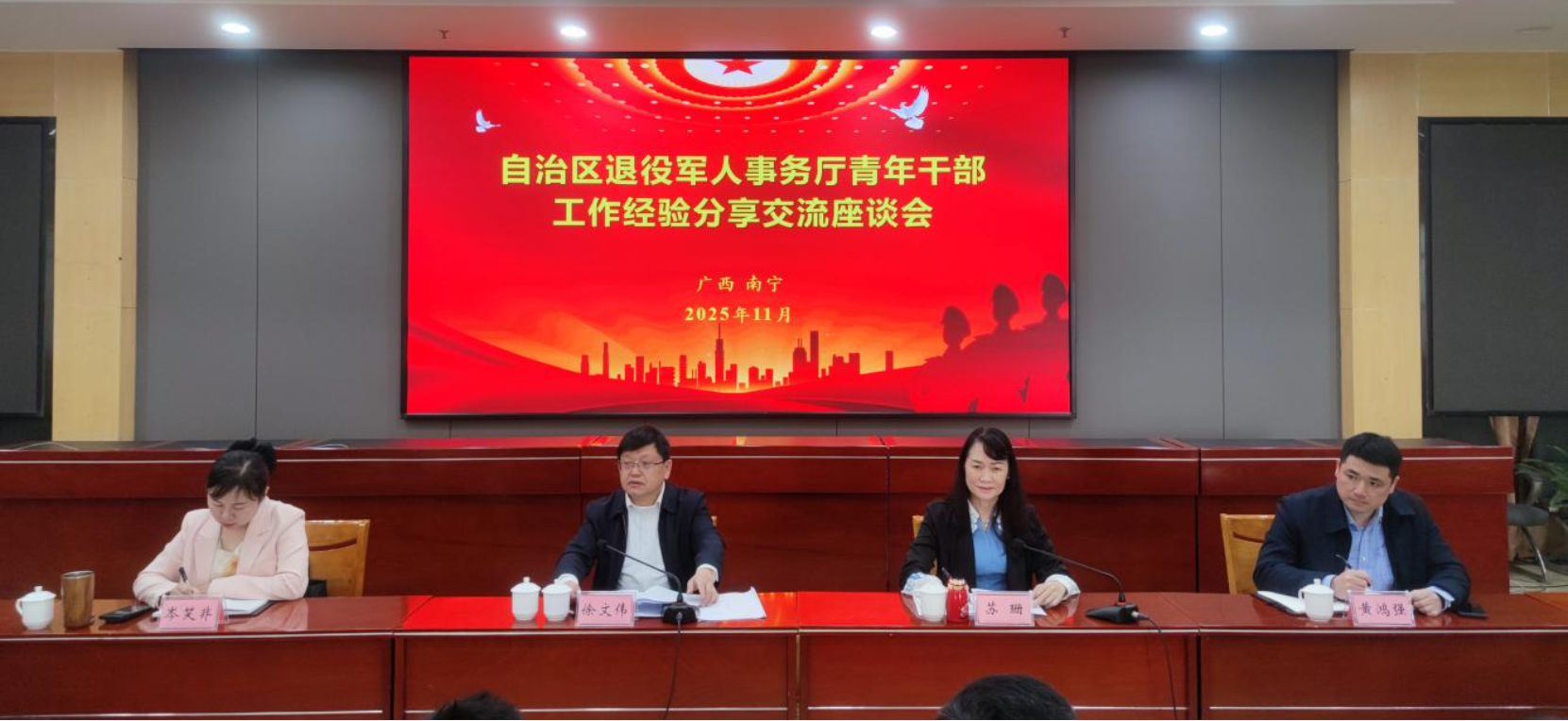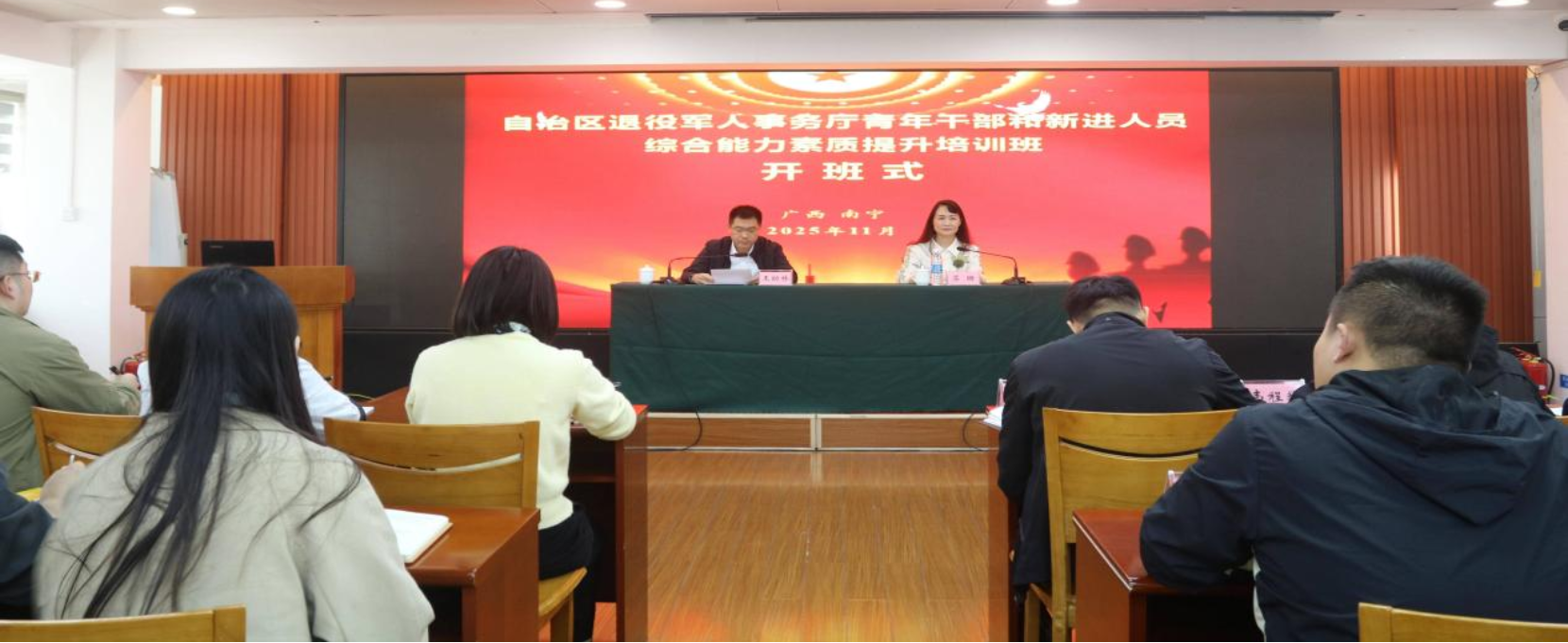 近日,自治区退役军人事务厅青年干部和新进人员综合能力素质提升培训班在南宁举办。自治区退役军人事务厅党组成员、副厅长、机关党委书记徐文伟参加工作经验分享交流座谈会。自治区退役军人事务厅党组成员、副厅长王幼林出席开班式并作动员讲话。(胡皓、向万开)