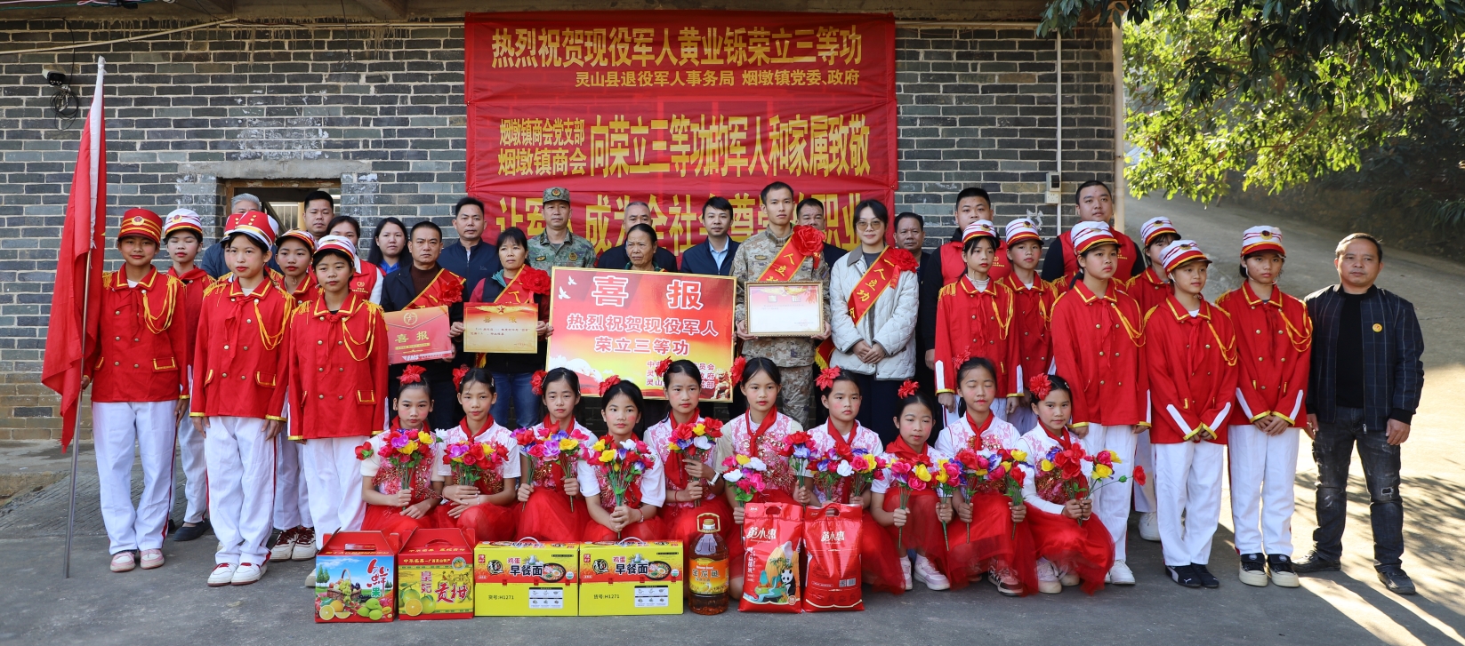 近日,灵山县退役军人事务局为荣立三等功的现役军人黄业铄家庭送立功喜报。(陈榕榕)