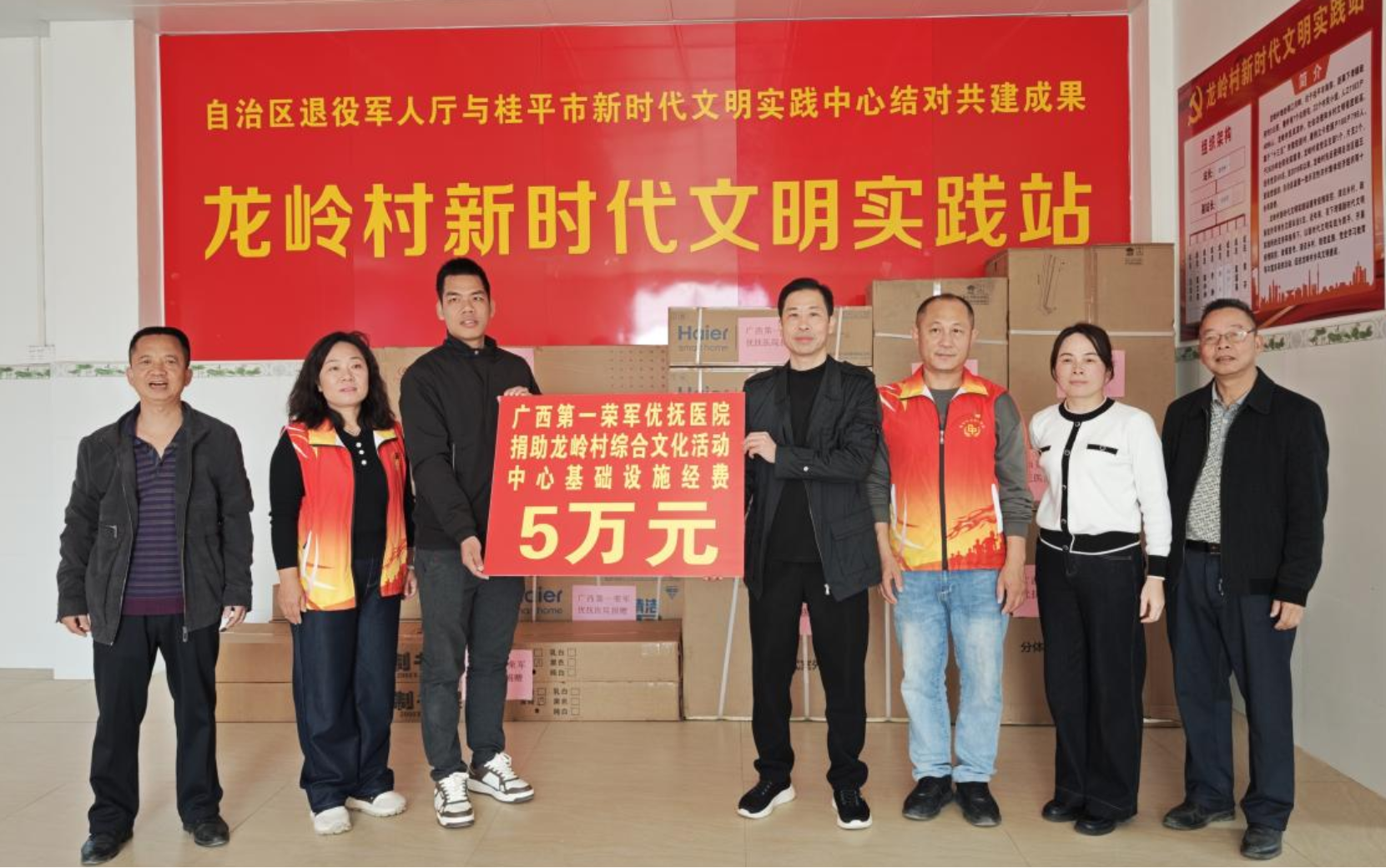 12月18日,自治区第一荣军优抚医院到桂平市下湾镇龙岭村开展结对帮扶工作,捐助基础设施经费5万元。(莫显娇、陈裕敏)