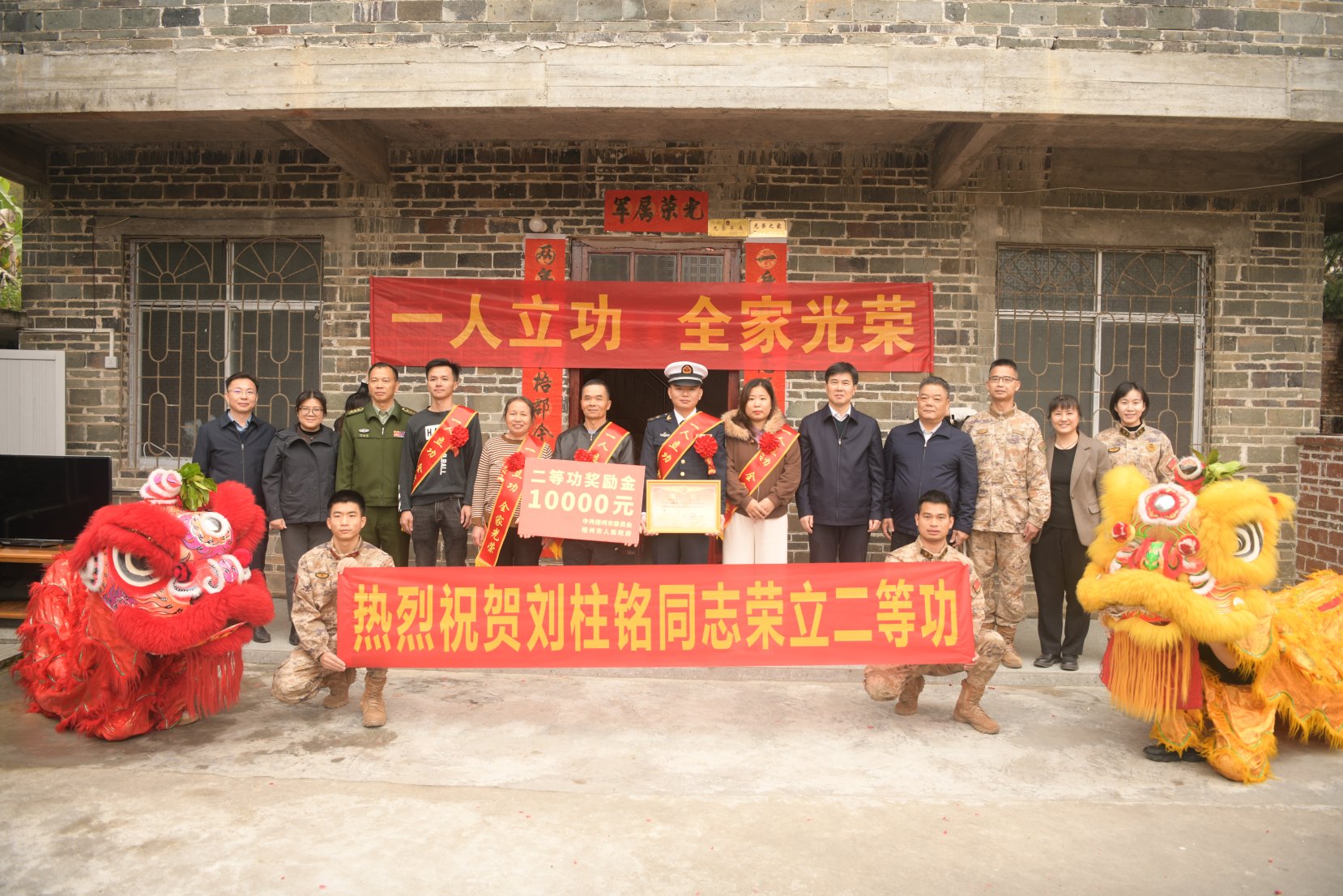 1月16日,梧州市为荣立二等功的现役军人刘柱铭家庭送立功喜报。(蓝霭琪)