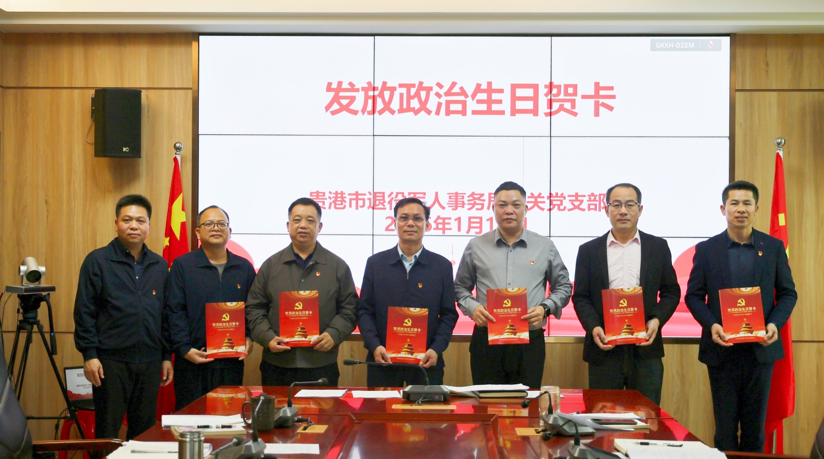 1月19日,贵港市退役军人事务局召开全体党员会议,深入学习领会习近平总书记关于党的建设的重要思想,为党员过集体“政治生日”。(吕泰中)