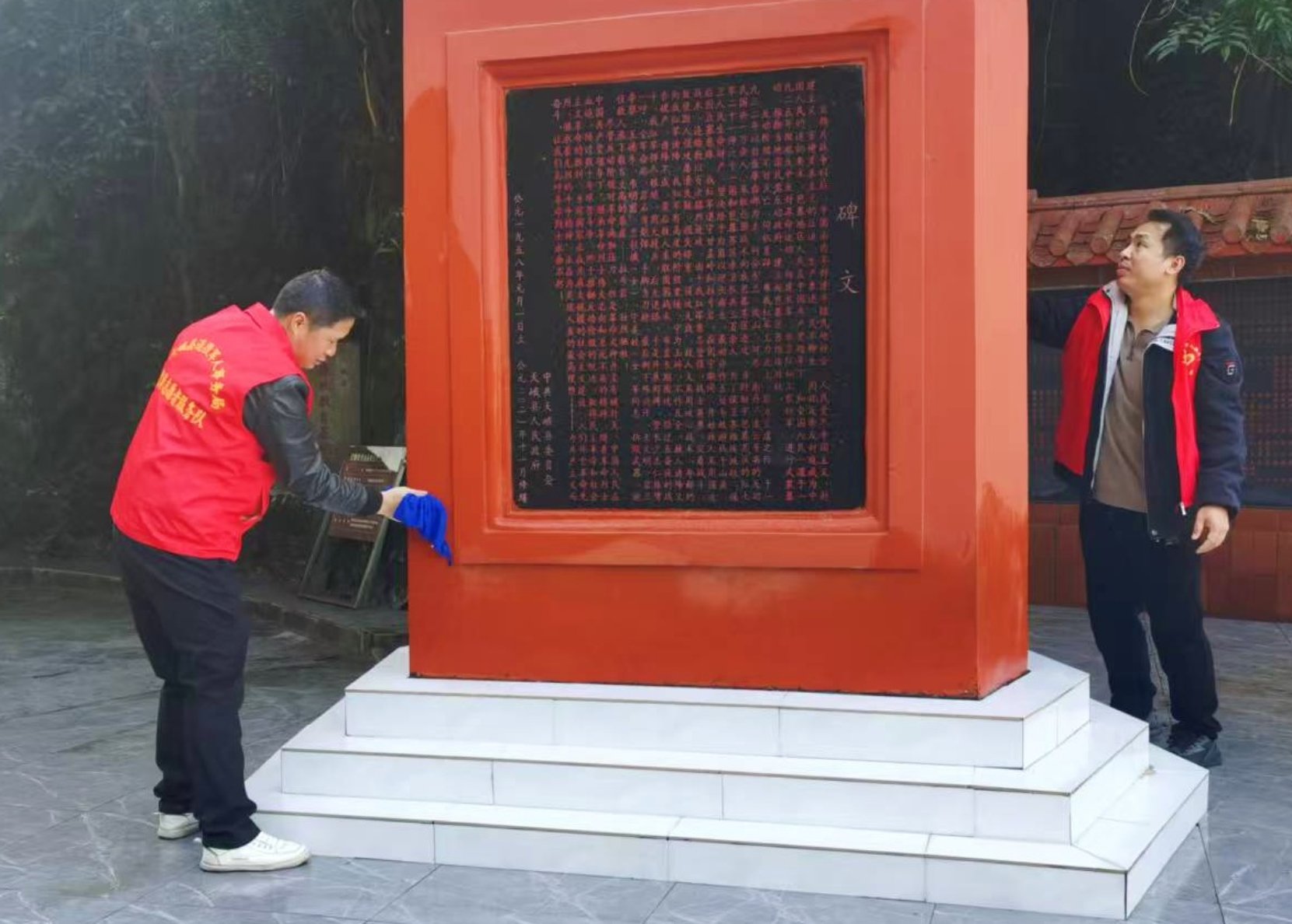 近日,天峨县退役军人事务局组织干部职工及退役军人志愿者,对零散烈士纪念设施开展日常维护工作。(张利红)