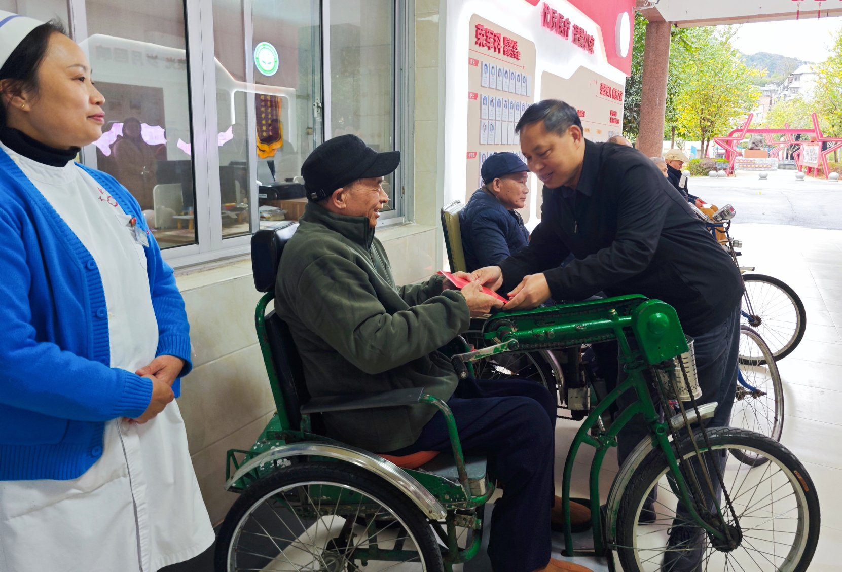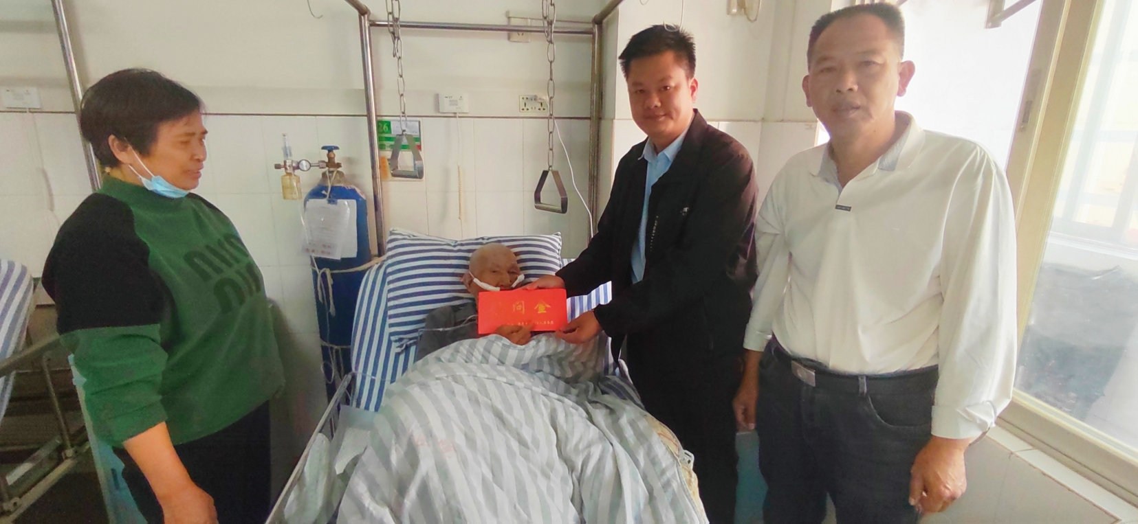 近日,贵港市港南区木梓镇退役军人服务站工作人员到医院慰问抗美援朝老战士黄集文,感谢他为捍卫国家安全、守护和平所做的贡献。(姜乐乐)