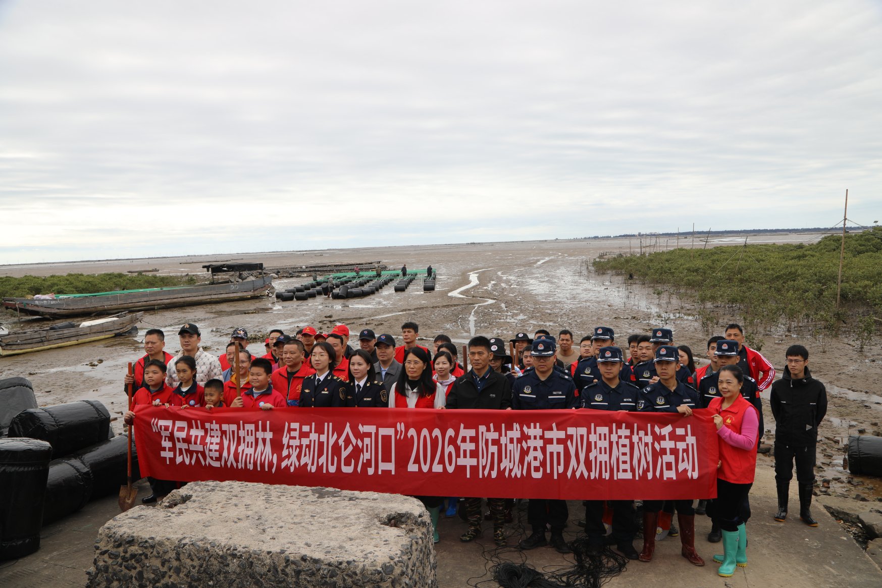 3月10日,防城港市双拥工作领导小组办公室联合市人力资源社会保障局、防城港海警局、东兴市退役军人事务局等12家单位,共同在防城港市北仑河口国家级自然保护区开展“军民共建双拥林·绿动北仑河口”植树活动。