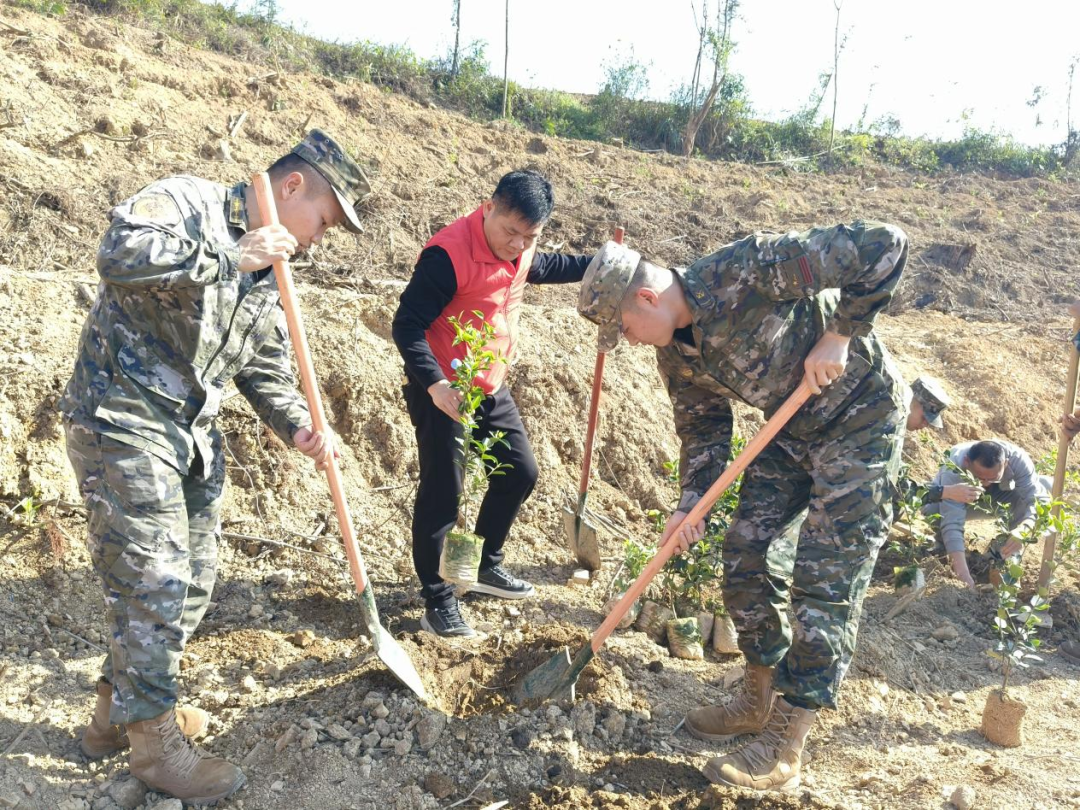 3月12日,河池市退役军人事务局联合相关单位开展义务植树活动。(杨淇龄)