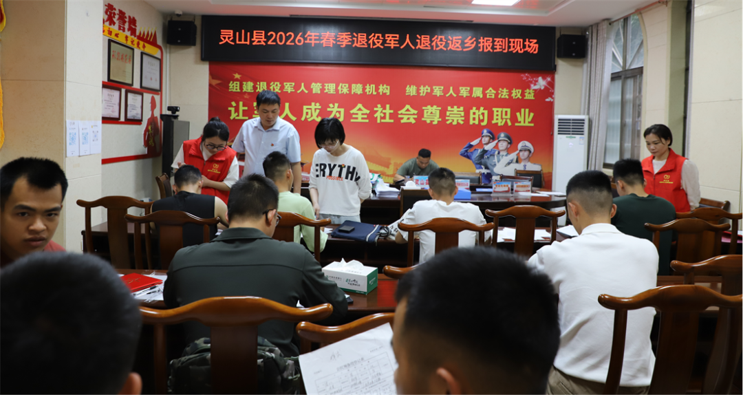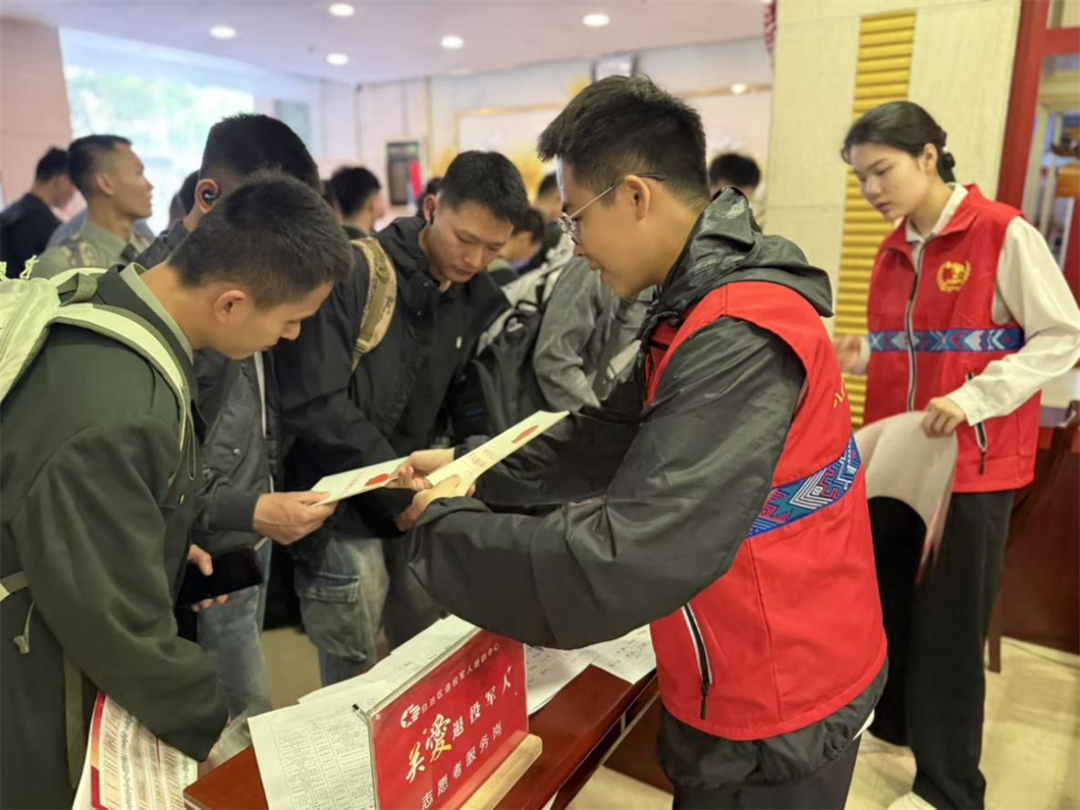 近日,灵山县退役军人事务局联合多部门现场办理退役报到“一件事”业务,以暖心服务迎接退役士兵光荣返乡。(陈榕榕)