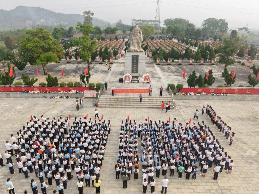 3月30日上午11时,春日的阳光透过苍松翠柏,映照庄严的龙州烈士陵园。墓碑前,红旗迎风飘扬,碑上斑驳的光影与黑白照片相映,空气中弥漫着淡淡的花香。