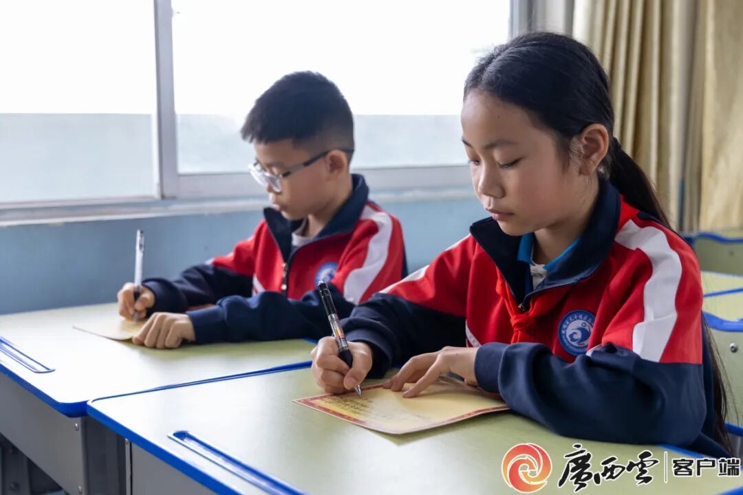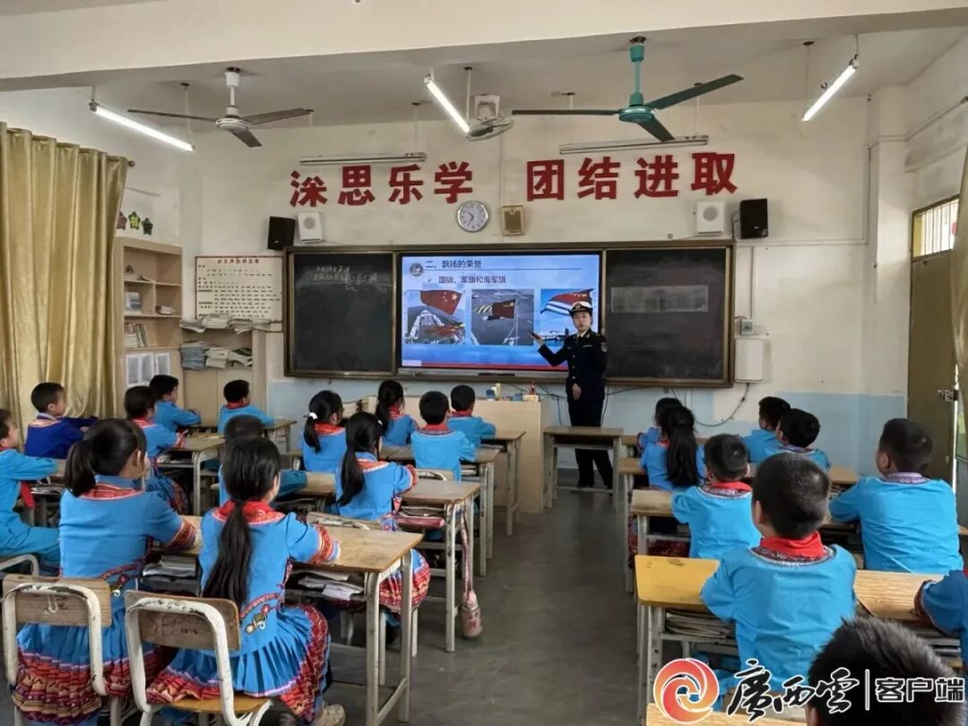 在校园里,孩子们提起广西舰,语气里满是自豪:“以我们广西命名的军舰在远方守护家国,我们觉得特别骄傲,也想把心里话说给海军哥哥姐姐听。”