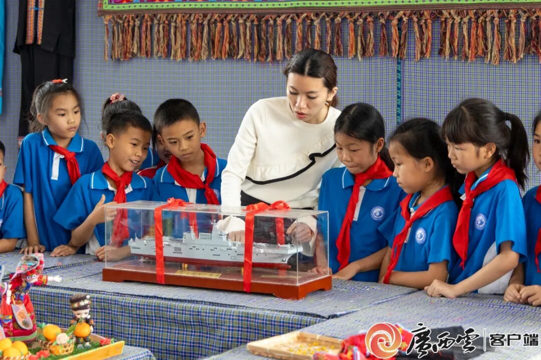 庆乐小学校长黄彦安告诉记者:“在广西各级双拥、统战工作部门等多方推动下,2022年12月舰校达成共建。”自此,一封封书信从乡村校园飞往深蓝大海,成为连接战舰与少年、军营与乡土的温暖纽带。