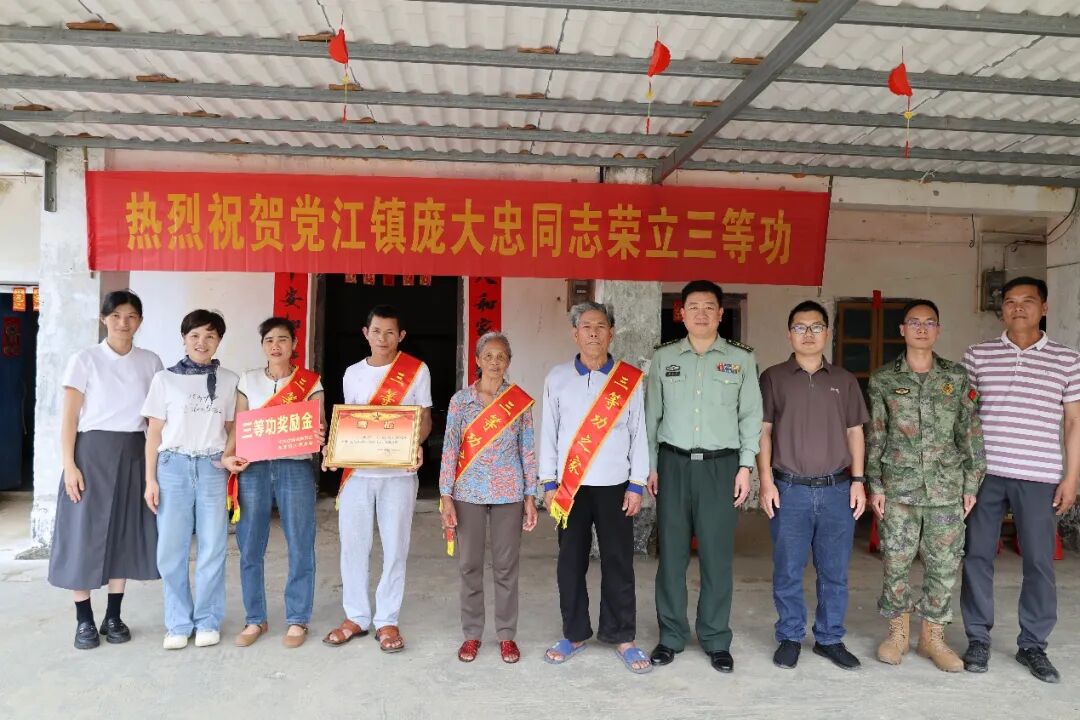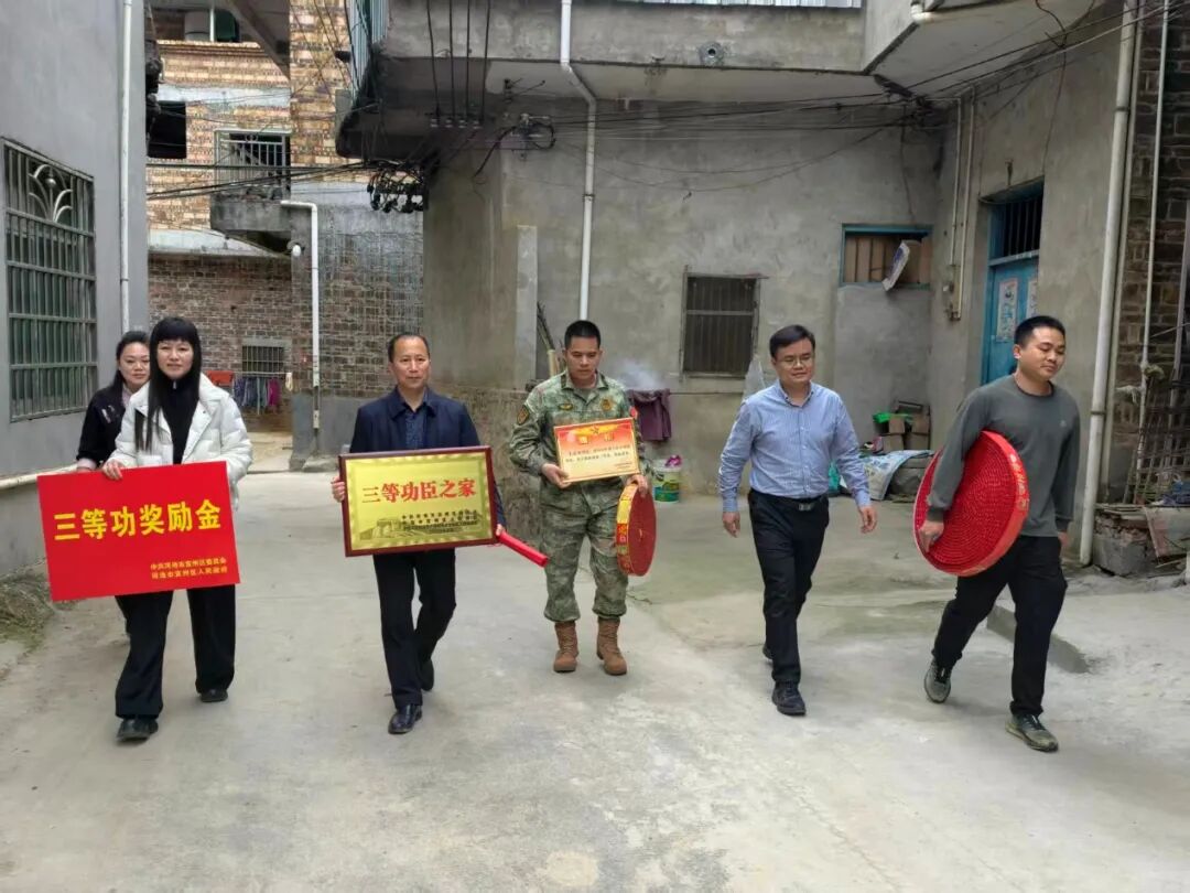 近日,合浦县退役军人事务局联合相关单位,为现役军人庞大忠家庭送立功喜报。(陈荣良)