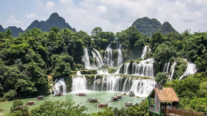 ▲2025年6月1日,游客在中越德天(板约)瀑布跨境旅游合作区游览。新华社发 赵京武 摄