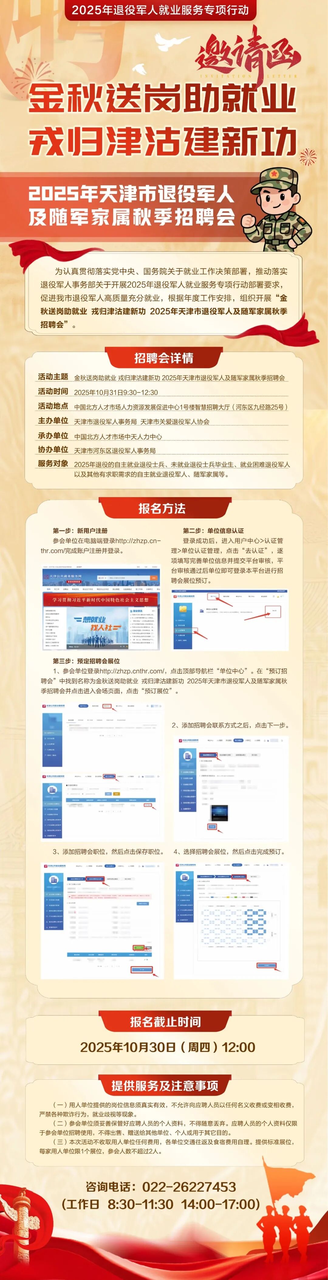 参与方式:退役军人、随军家属:持相关证件到招聘会现场参加